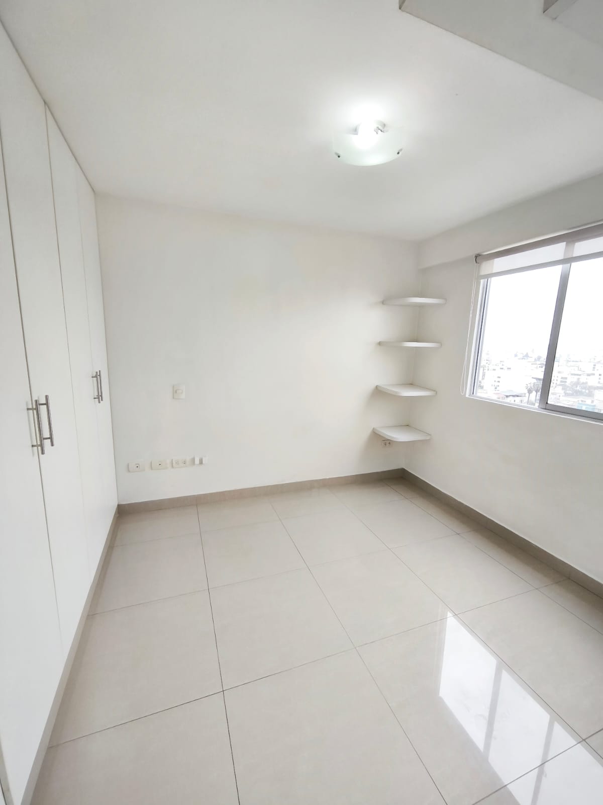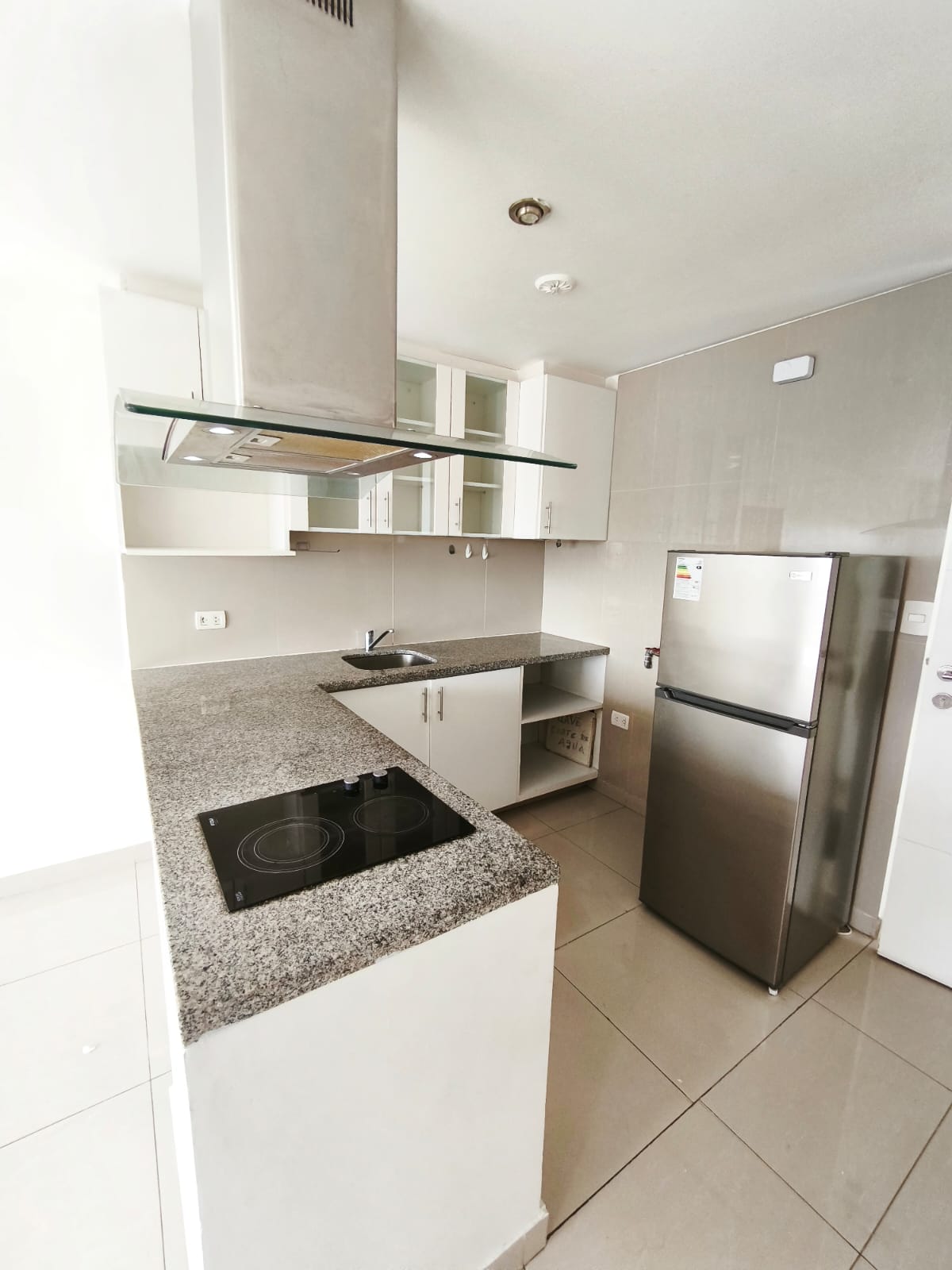 ALQUILO MINIDPTO 1D -1B - OCEANUS MALECÓN BERTOLOTTO SAN MIGUEL Área 40 m 2 Vista externa Piso 13 con ascensor Cocina abierta. Incluye cocina, campana y refrigerador. Piso porcelanato Rollers Dormitorio privado con closet Baño en el dormitorio principal con puerta de ducha de vidrio y botiquín Acepto Mascota Condominio Oceanus Seguridad 24 hrs Piscina Zona de parrillas Sala de internet